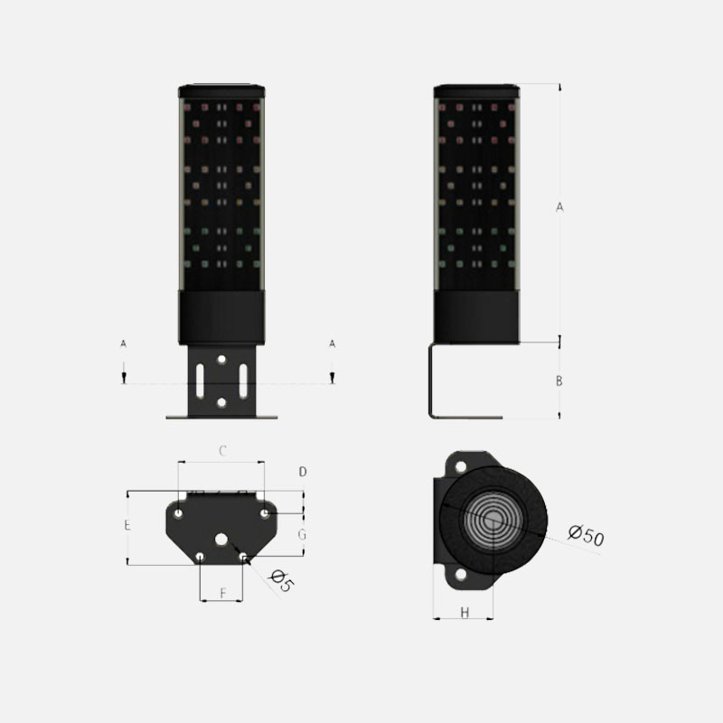 Questo Segnalatore Acustico Luminoso esterno è composto da 3 luci a LED, di colore Verde, Giallo e Rosso. Collegato al sistema, permette di sapere attraverso luci e suoni le condizioni di sicurezza della macchina sulla quale è installato.